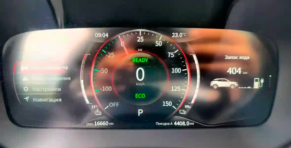 Соответствие заявленному пробегу, с корректировкой в 10-15%, при спокойном режиме вождения в рамках скоростного режима. По моему мнению электромобиль EVOLUTE i‑JOY, из заявленных 407 км полной тяговой батареи – 100%, в летний период времени (тест был в августе 2024 год) в пределах верхнего разрешенного скоростного порога, проезжает уверенно дистанцию в 350 км. Хотя коллеги получали и больший результат по пробегу. Но тут, всё индивидуально.